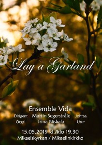 Glad Runebergsdag från Vida! Det är en bra dag att avslöja vårens program: konserten Lay A Garland, som går av stapeln i Mikaelskyrkan i Åbo den 15 maj kl. 19.30. På repertoaren står engelsk senromantik och modernare franska orgeltongångar samt en nypa tyskspråkig, centraleuropeisk kryddning. Organist är Irina Niskala och kören dirigeras av Martin Segerstråle.